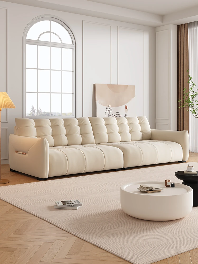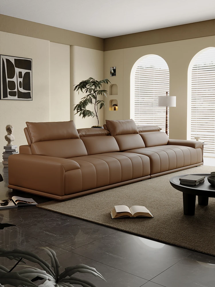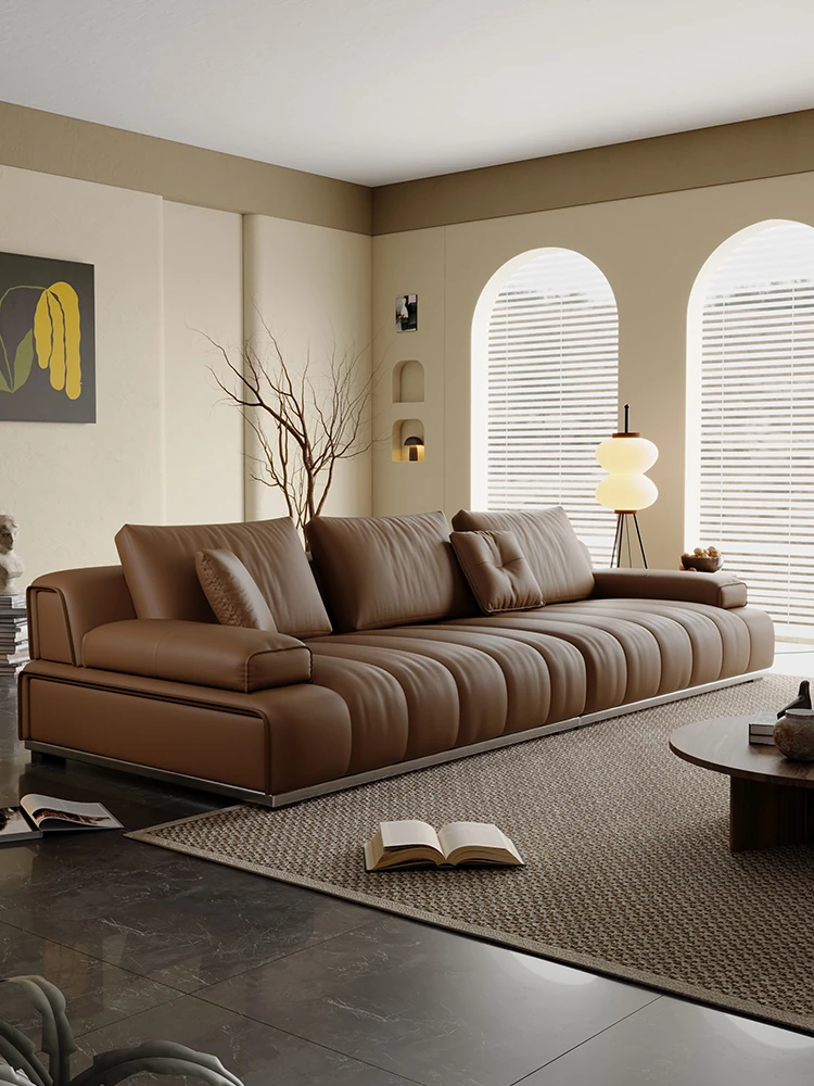 New Italian Minimalist Cat Scratch Leather Sofa - Modern Simple Design for Spacious Living Rooms, Featuring Directly Laid Piano Key Real Leather. Perfect Blend of Style and Functionality!