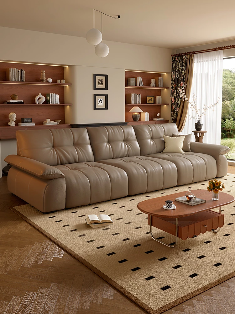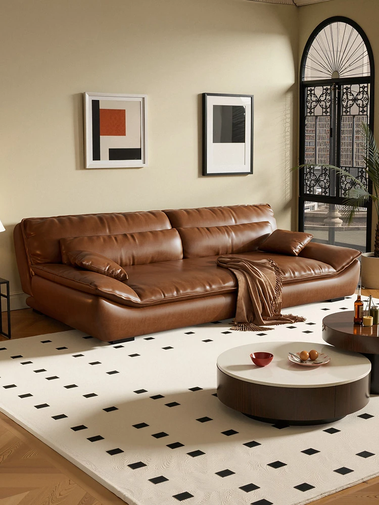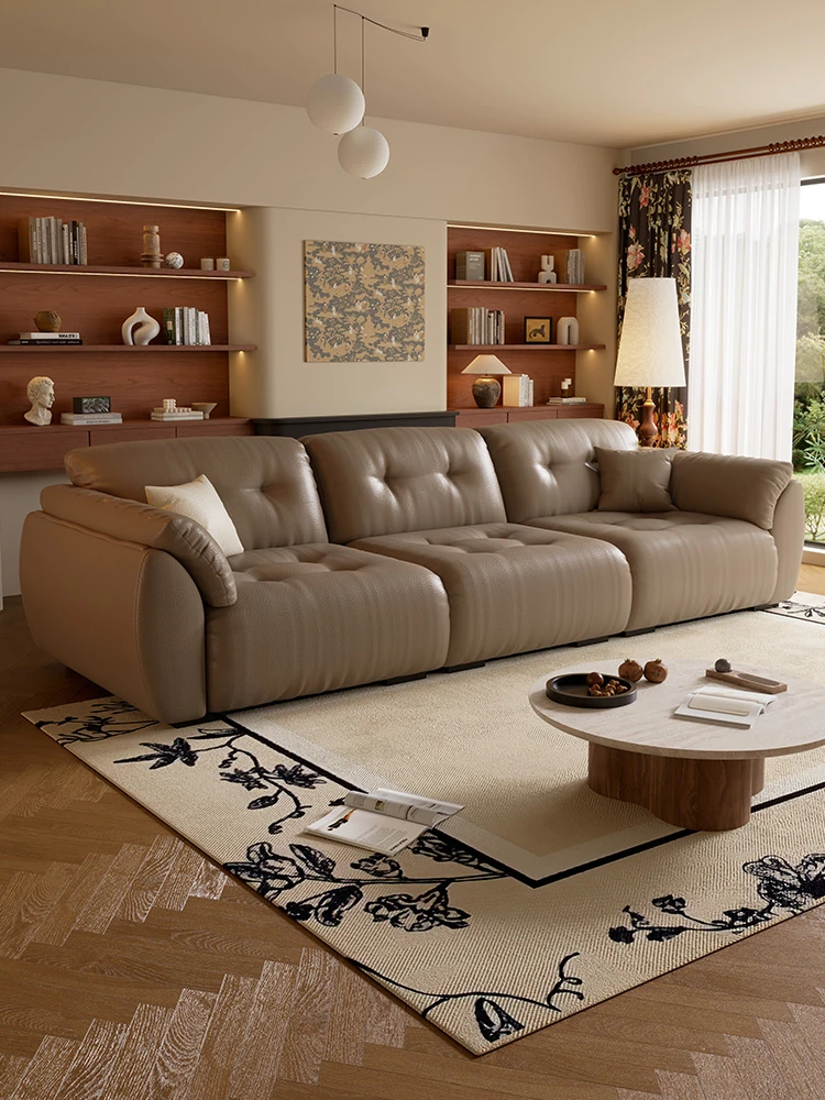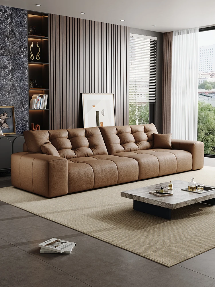 Italian Luxury Thickened Genuine Leather Cloud Sofa - Modern Retro Minimalist Living Room Upholstered Couch for Apartments - 2025 New Arrival