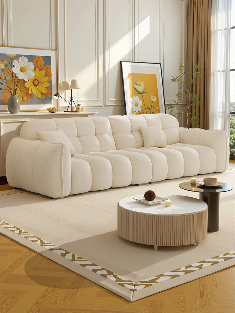 Yuxin Creamy Wind Resistant, Wear-Resistant Fabric Sofa for Living Room - Modern Minimalist Design, Perfect for Small to Medium Spaces, 2025 Straight Three-Seater