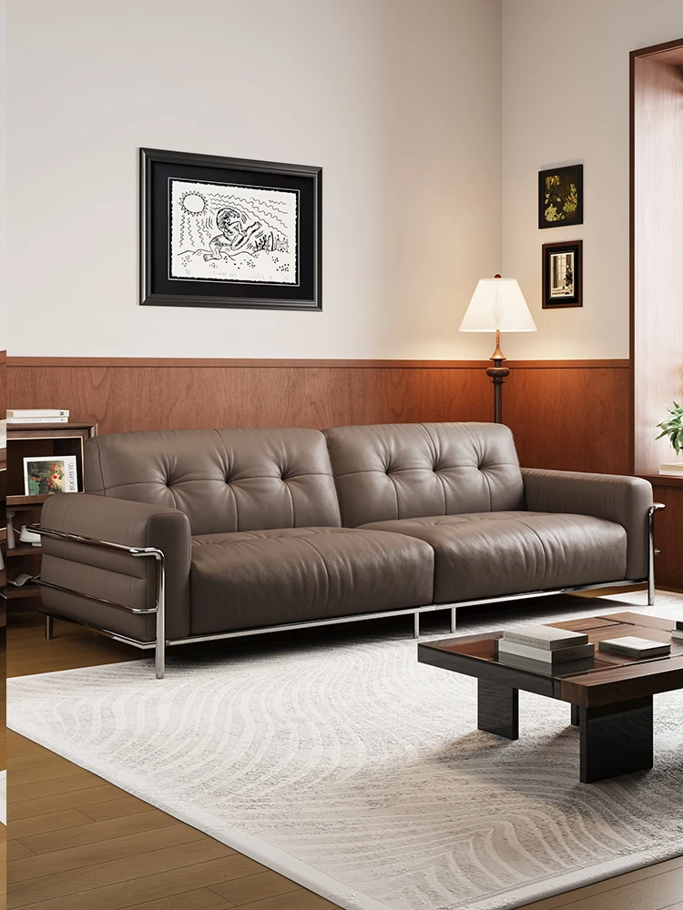 Italian Luxury Earl Genuine Leather Sofa - Vintage Bauhaus Style, Perfect for Small Living Rooms, Featuring Stainless Steel High Legs for a Chic Touch
