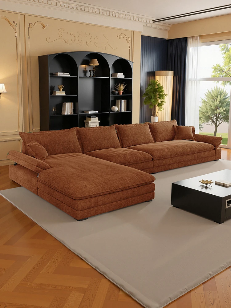 2025 New Cloud-Soft Chenille Sailboat Chaise Lounge Sofa – Italian Vintage Style, Adjustable Fabric with Down Filling for a Cozy Living Room Experience