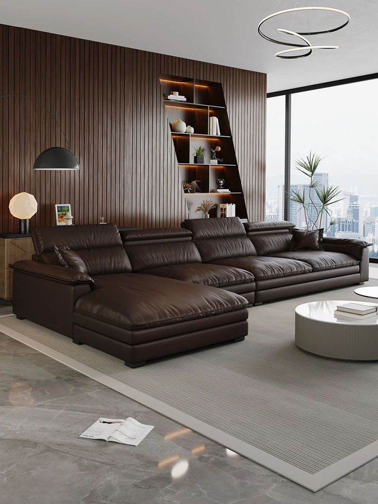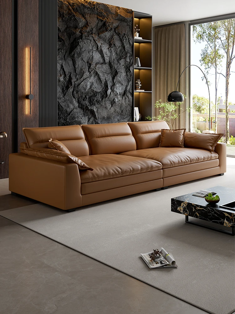 2025 New Italian Imported Finnish Genuine Leather Sailboat Sofa - Modern Luxury Oversized Deep Seat for Your Living Room