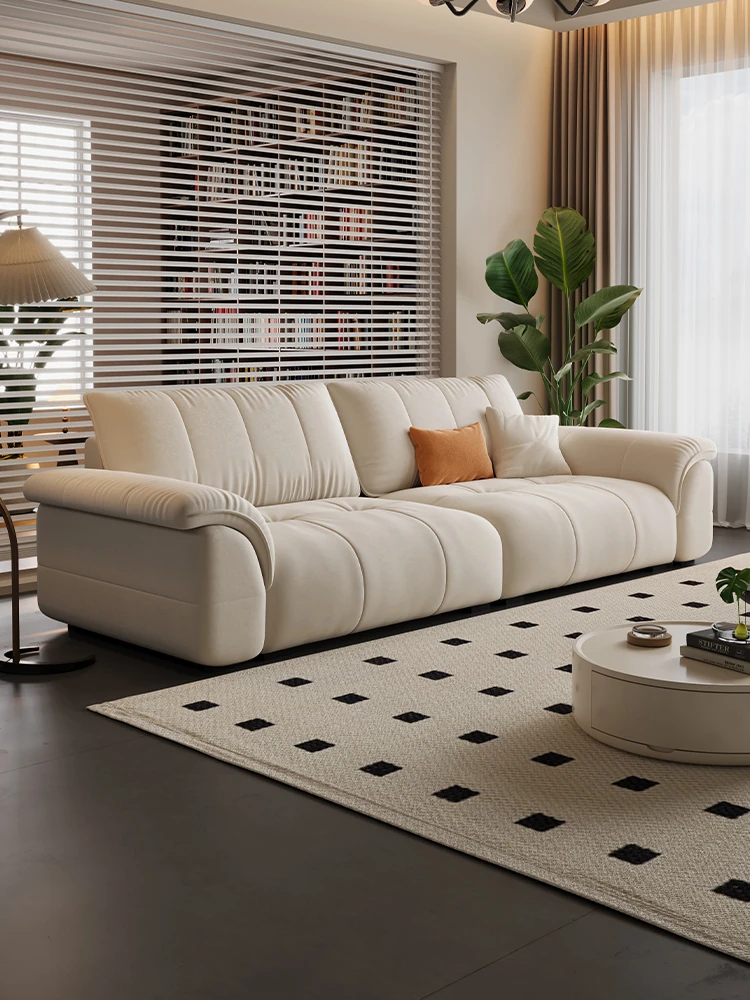 Creamy Soft Baby Fleece Sofa - Modern Minimalist Fabric Couch for Living Room, Ideal for All Room Sizes, Featuring Piano Key Design and Durable Oil-Waxed Leather Upholstery