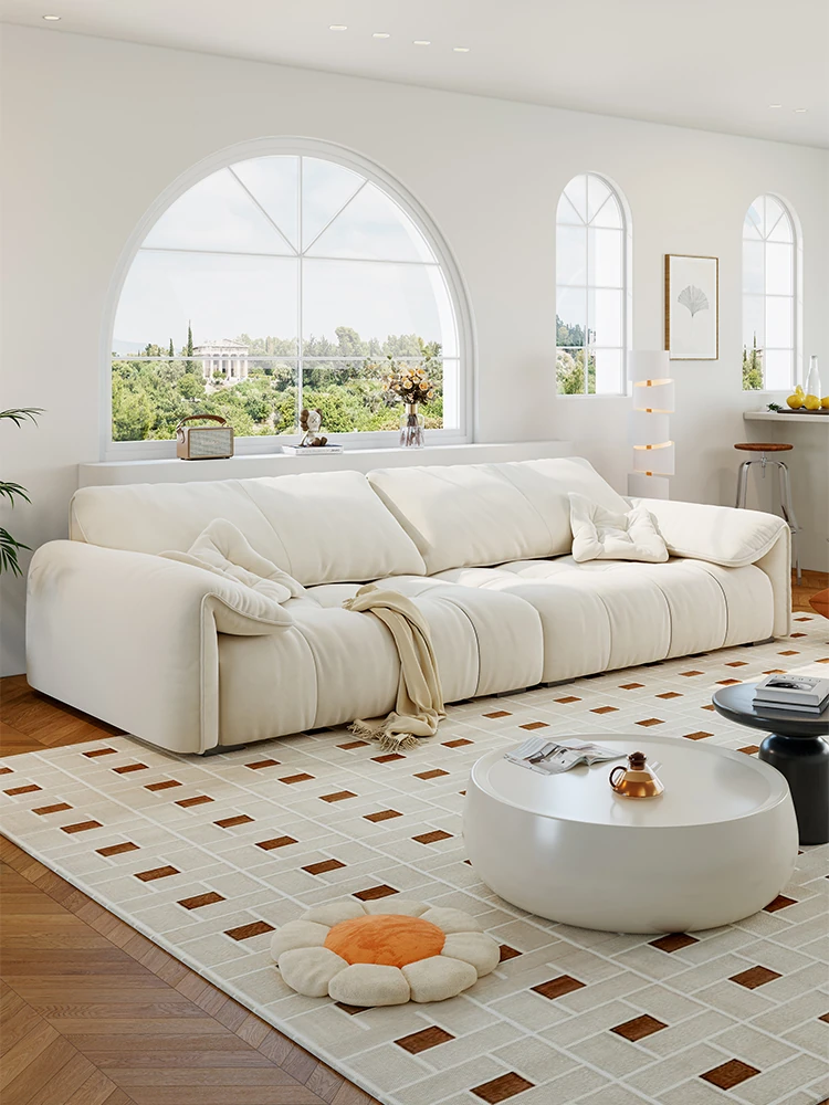Retro Cream Snow Velvet Functional Sailboat Sofa - Italian Minimalist Extra Wide Fabric Couch for Living Room & Villa