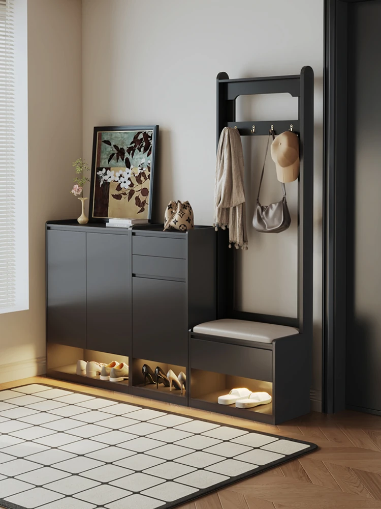 靴箱・コートラック一体型、ベンチ付きの壁掛け収納キャビネット!靴を履き替えるのも楽々、玄関をスッキリ整理整頓!おしゃれなデザインで、入室時の必需品です。