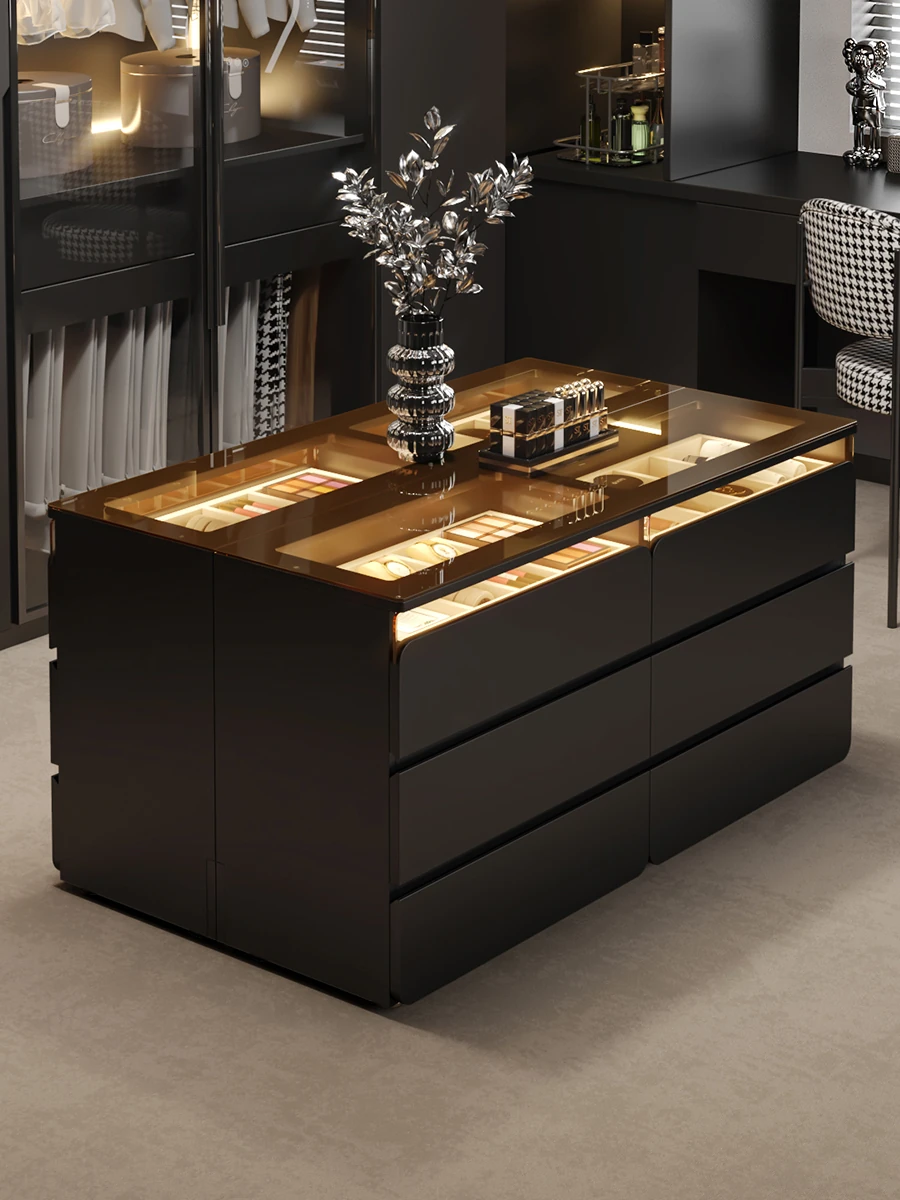 シンプルでモダンなジュエリー中島カウンター、寝室用フロアディスプレイキャビネット、クローゼット用高級両面収納チェスト。おしゃれな収納で空間を美しく演出!
