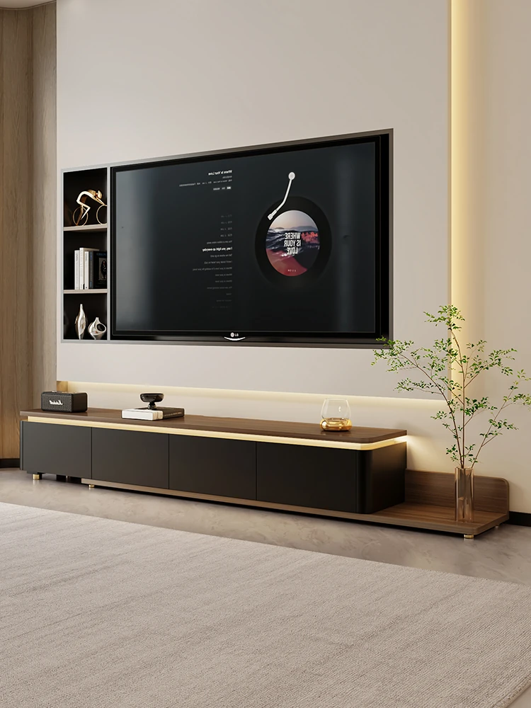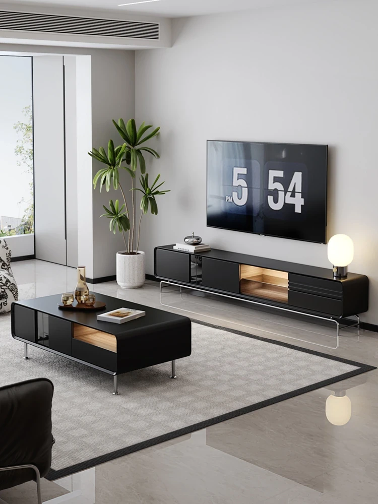 洗練されたデザインのテレビボード、リビングにぴったりのミニマル収納キャビネット。コンパクトな小型住宅にも最適な一体型ウォールマウントテレビスタンドとコーヒーテーブルのセットで、スタイリッシュな空間を演出します。
