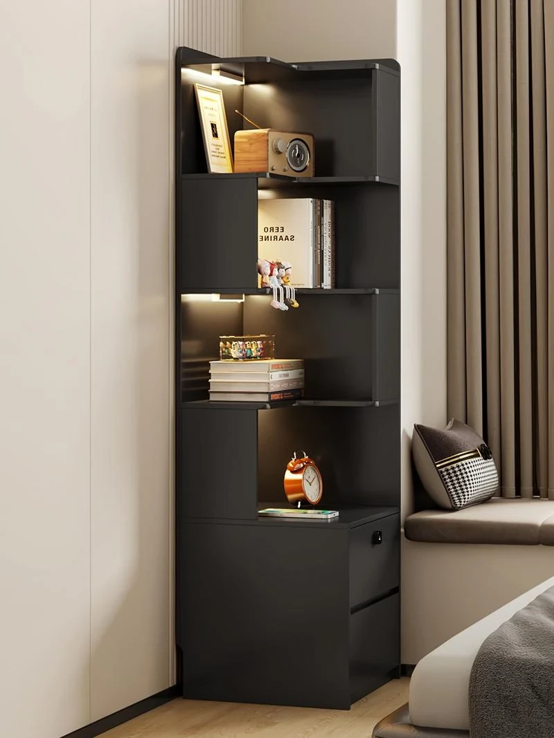 モダンミニマリスト高収納書棚一体型 家庭用ソファサイド 超スリム収納キャビネット 寝室用ベッドサイドテーブル 便利な置物ラックでお部屋をスッキリ整理!