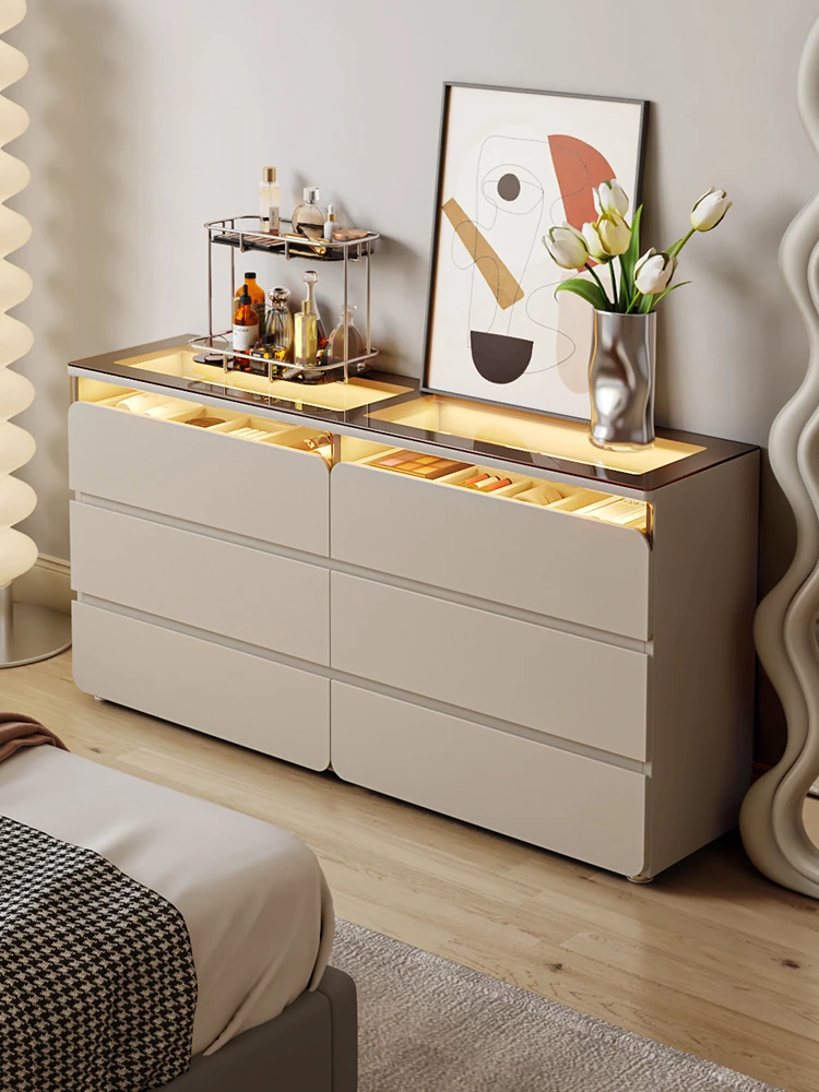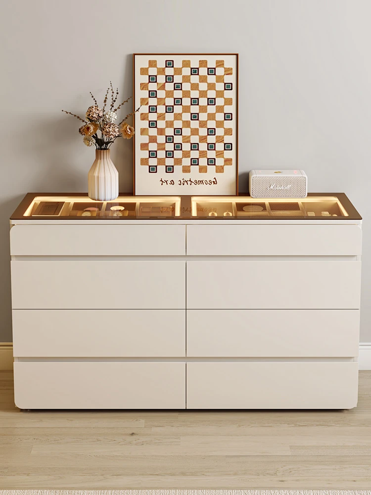 モダンシンプルな八斗チェスト、クリーム風のベッドサイドキャビネット。ジュエリー収納に最適な引き出し式収納キャビネット、超薄型30cmで省スペースも実現!おしゃれで機能的なインテリアを楽しんでください。