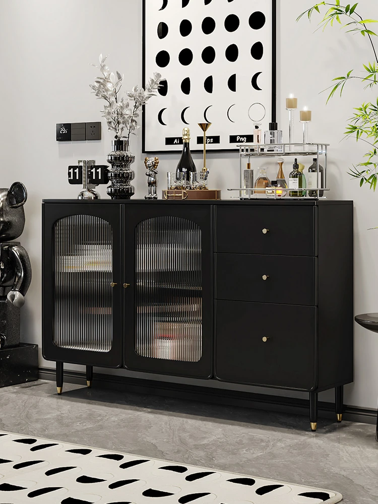 モダンミニマリスト超薄型ウォールキャビネット - ブラックのティーサーバー&ストレージキャビネット、リビングルームに最適な収納ソリューション!シンプルでスタイリッシュなデザインで、空間を美しく演出します。