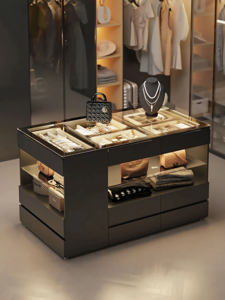 イタリアンミニマルジュエリー中島キャビネット・衣服と帽子の収納・寝室用フロア展示キャビネット・家庭用引き出し収納クローゼット。シンプルで洗練されたデザインで、あなたの空間を美しく演出します!