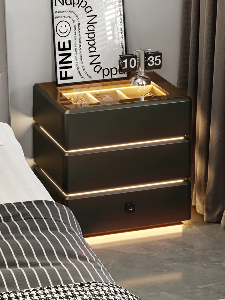クリーム風インテリジェントナイトスタンド!新型小型充電式マルチ機能ベッドサイドキャビネット、指紋ロック付きで安心・安全!寝室にぴったりの便利な収納アイテムです。