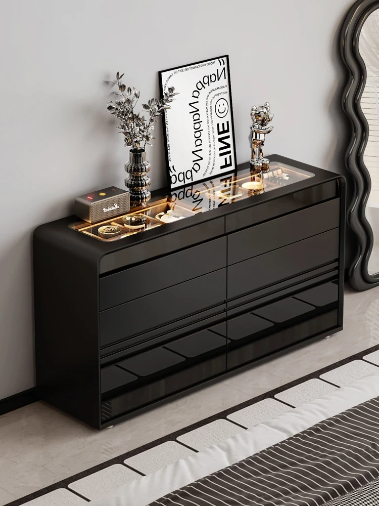 モダンでシンプルなデザインのベッドサイド収納キャビネット - 高級感あふれる八段引き出しで、主寝室の壁際にぴったりフィット!おしゃれで機能的な収納力で、部屋をスッキリと整えます。