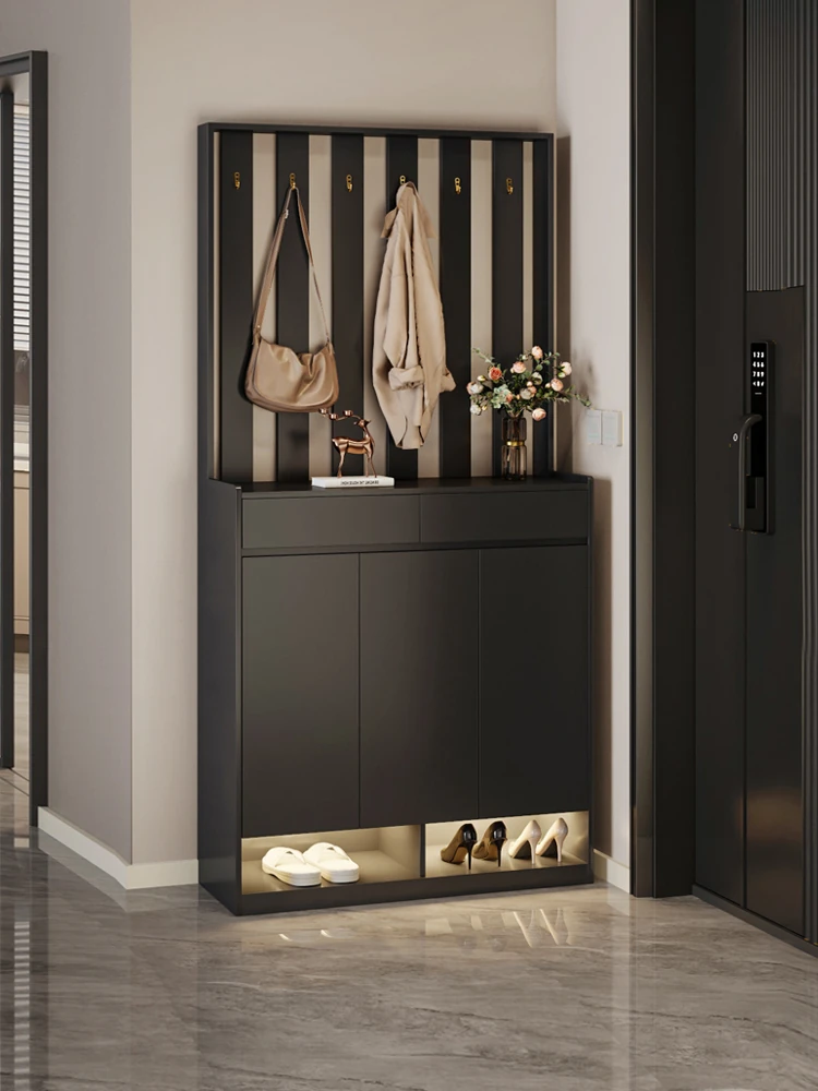 壁掛けコートハンガー付きのレトロな玄関キャビネット!2025年新作、入居時に最適な靴収納と仕切り機能を兼ね備えた家用リビングキャビネット。おしゃれで機能的な空間を演出します!