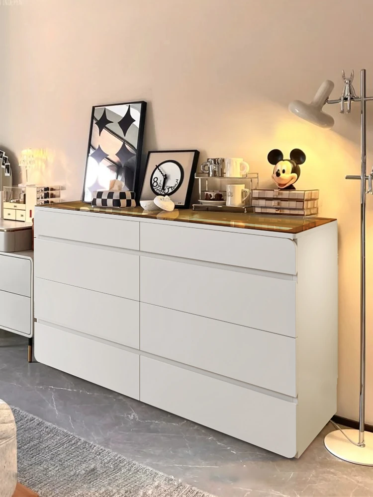 Minimalist Modern High-End Bedroom Dresser - Stylish Storage Cabinet with Eight Drawers for Wall-Mounted Organization in Master Bedroom
