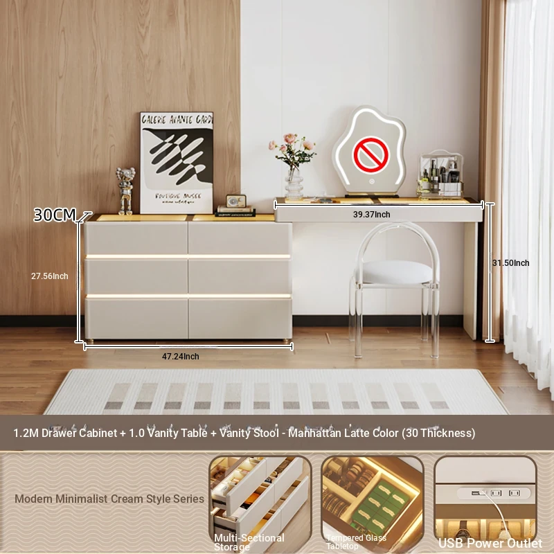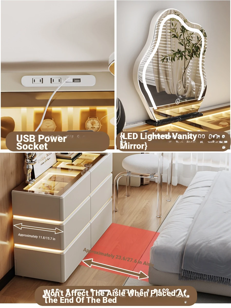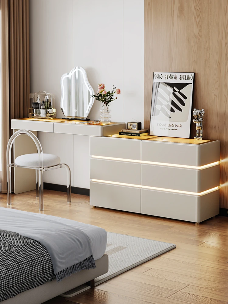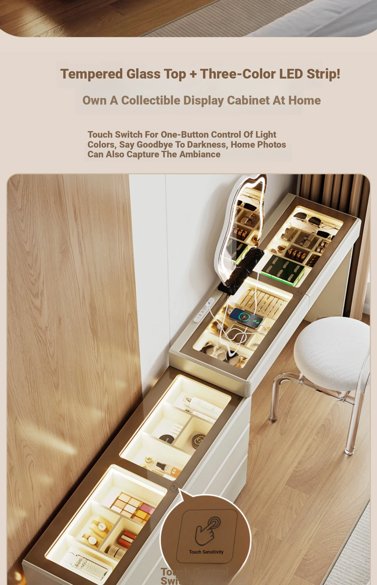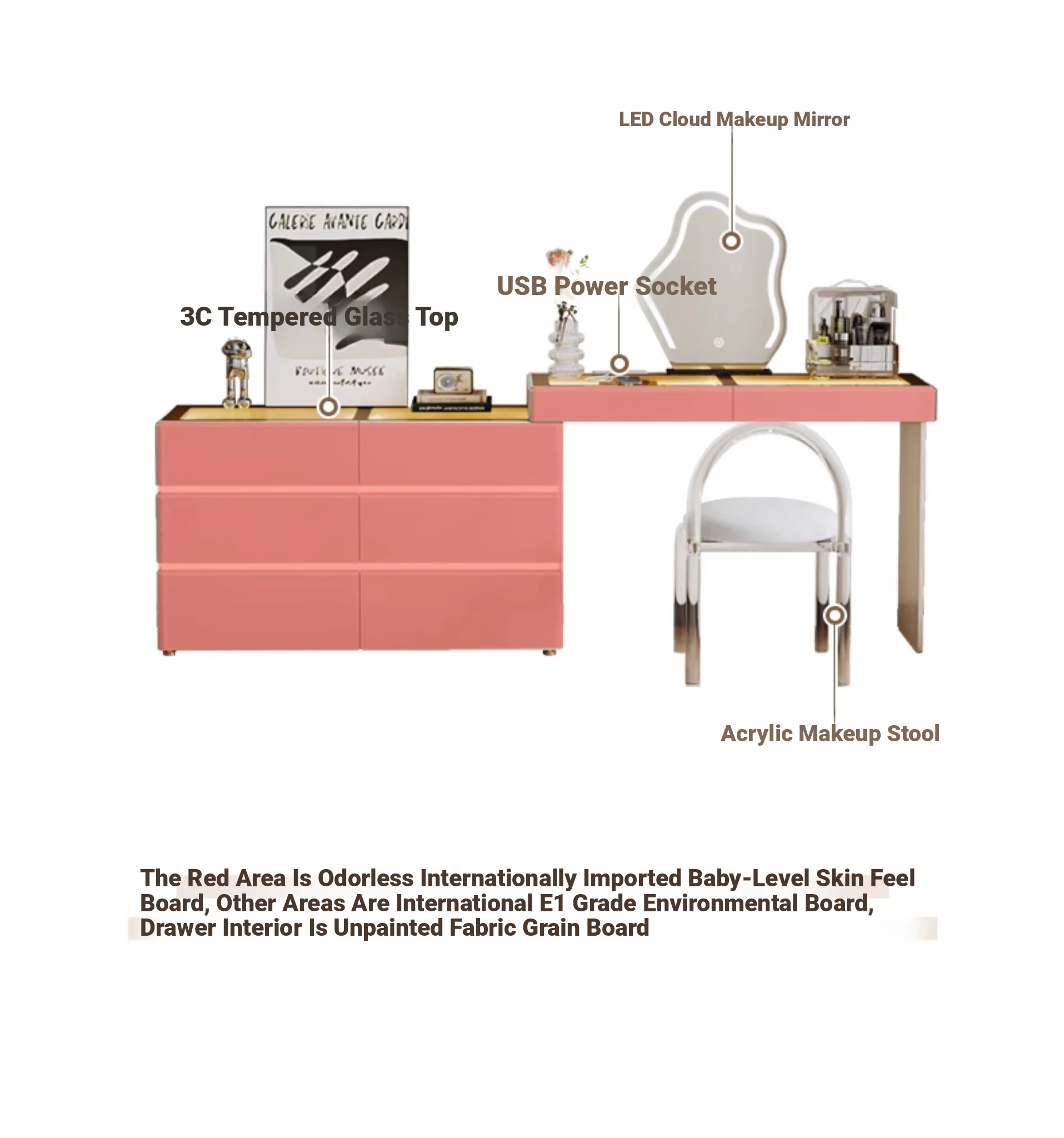 Elegant Slim Makeup Vanity with Integrated Dresser - Ideal for Small Spaces, Features Expandable Design for Bedroom Use, Perfect for Stylish and Luxurious Living!