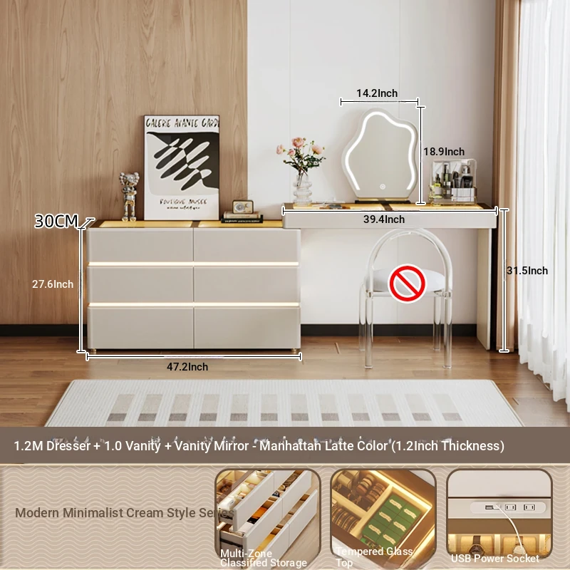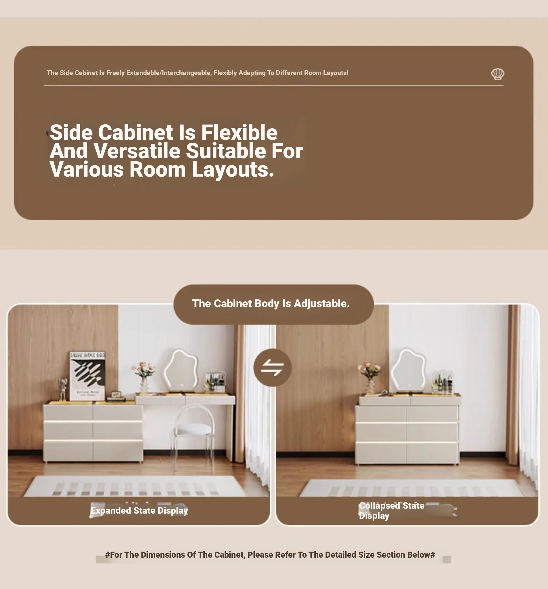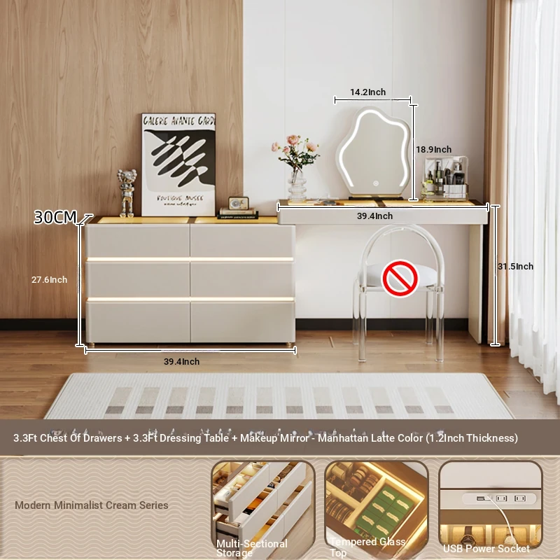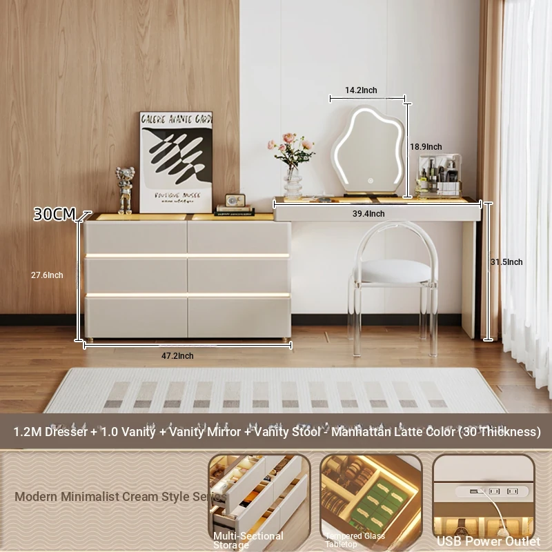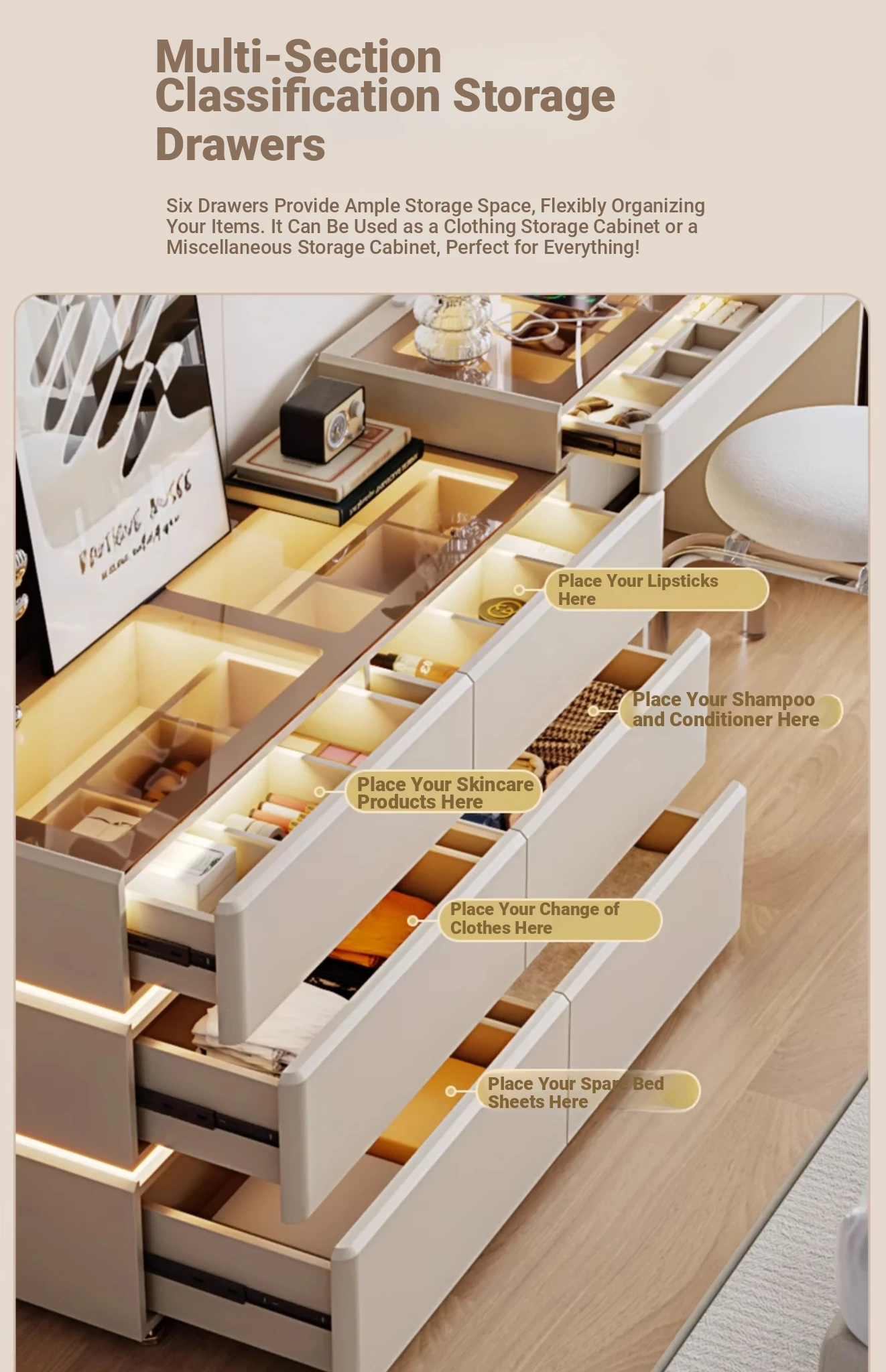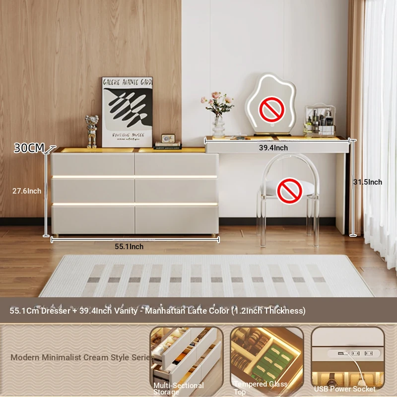 Elegant Slim Makeup Vanity with Integrated Dresser - Ideal for Small Spaces, Features Expandable Design for Bedroom Use, Perfect for Stylish and Luxurious Living!