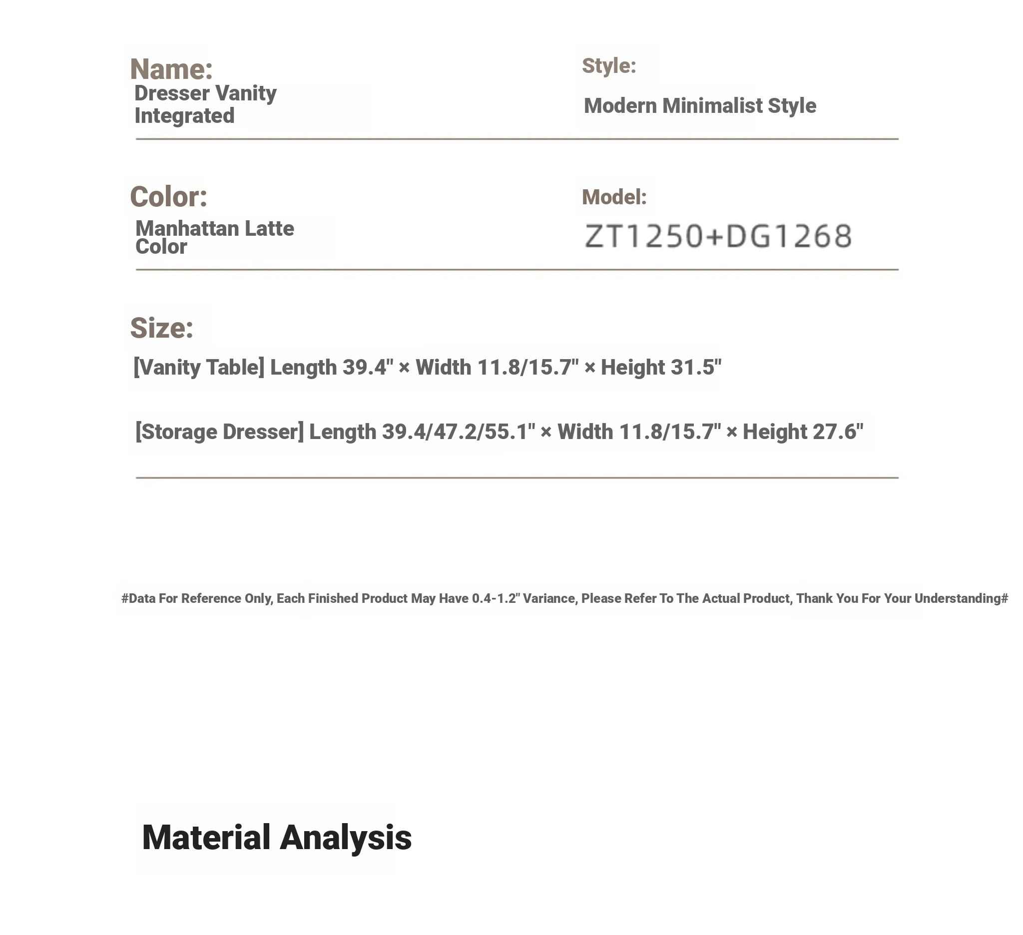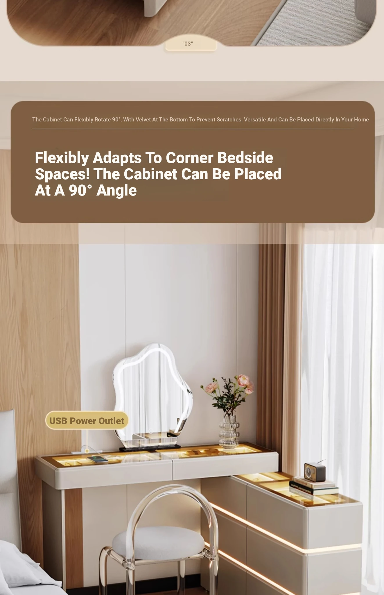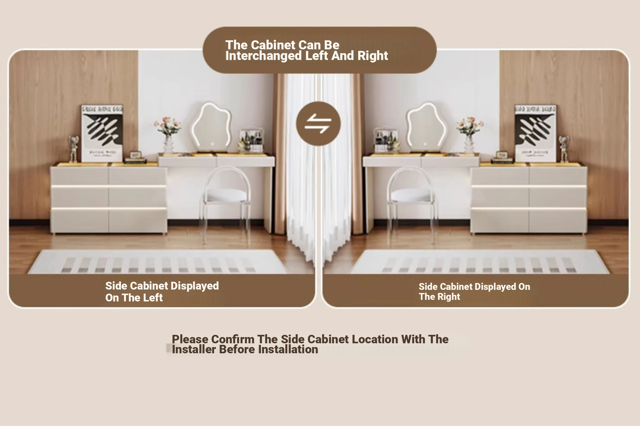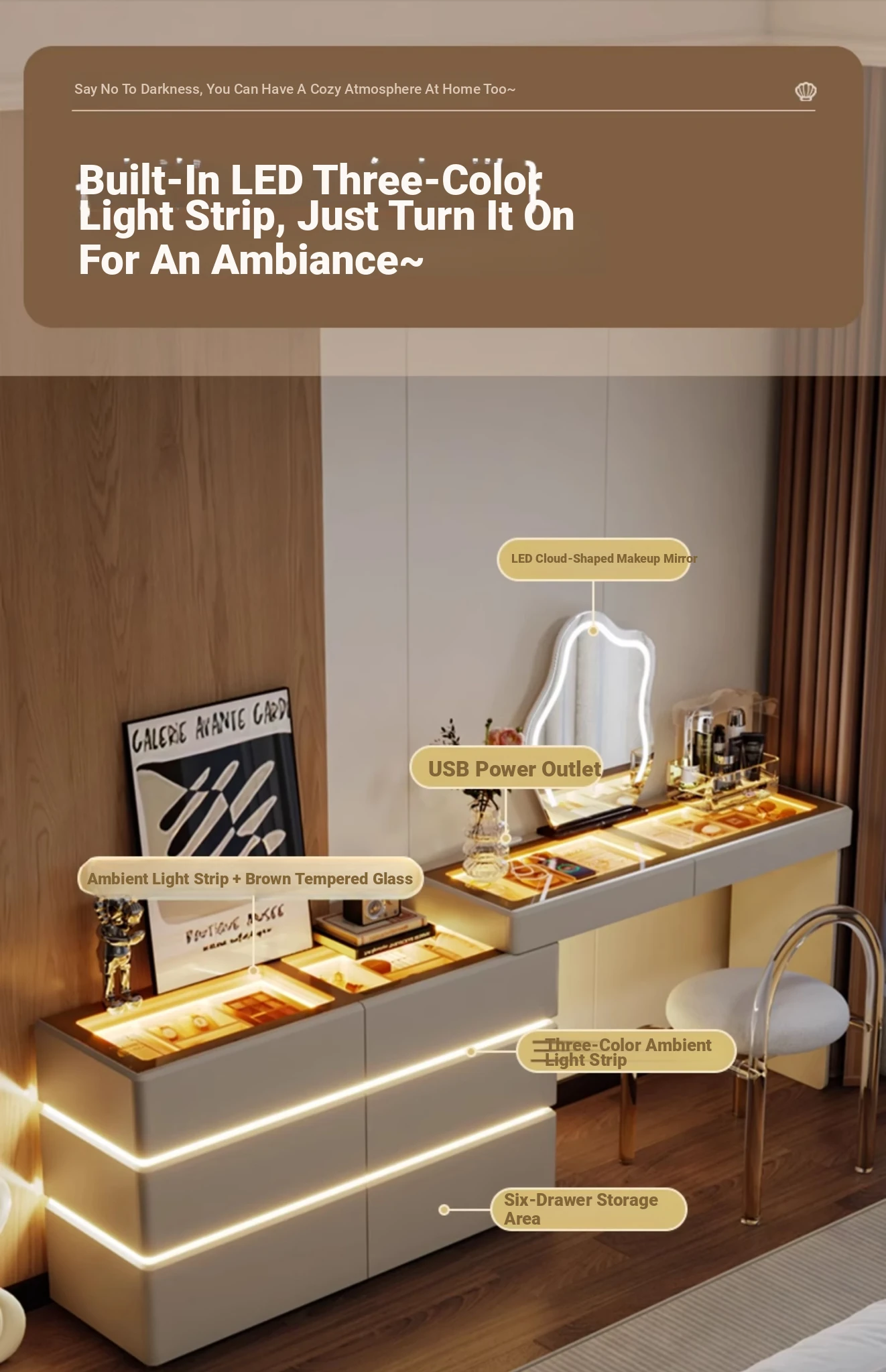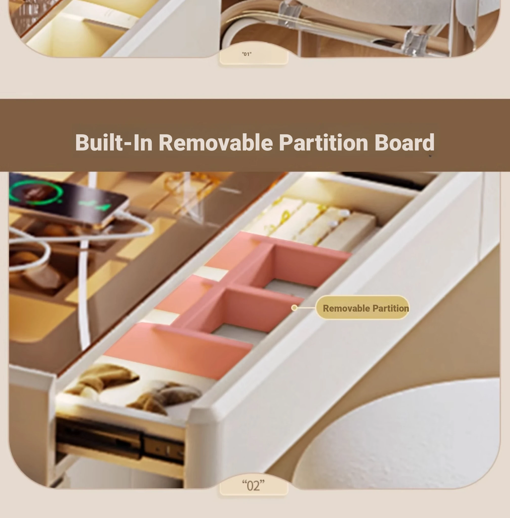 Elegant Slim Makeup Vanity with Integrated Dresser - Ideal for Small Spaces, Features Expandable Design for Bedroom Use, Perfect for Stylish and Luxurious Living!