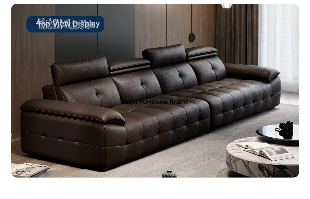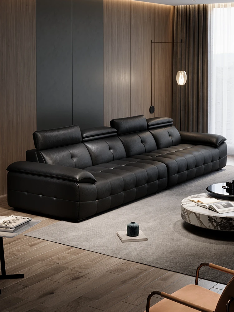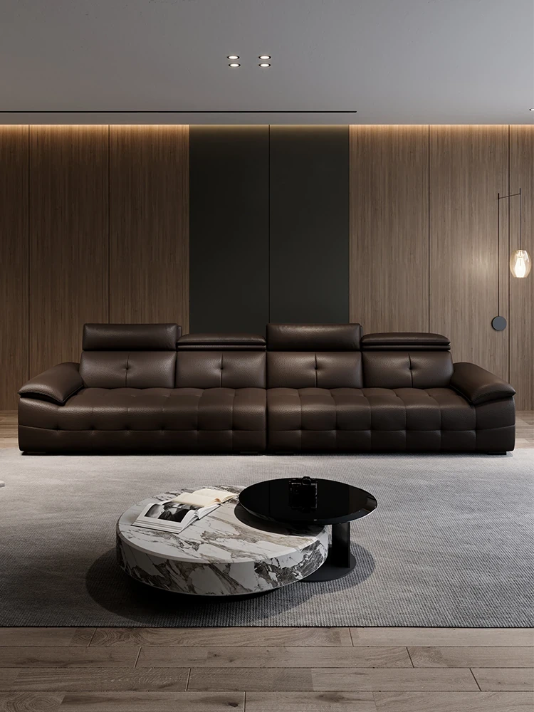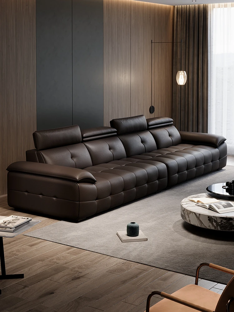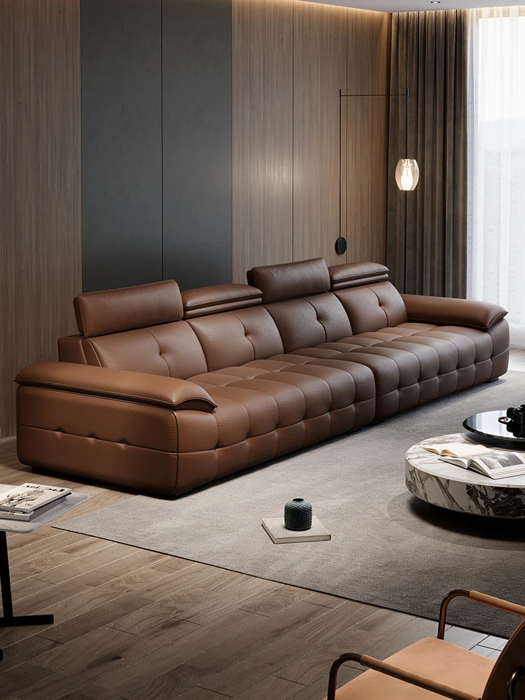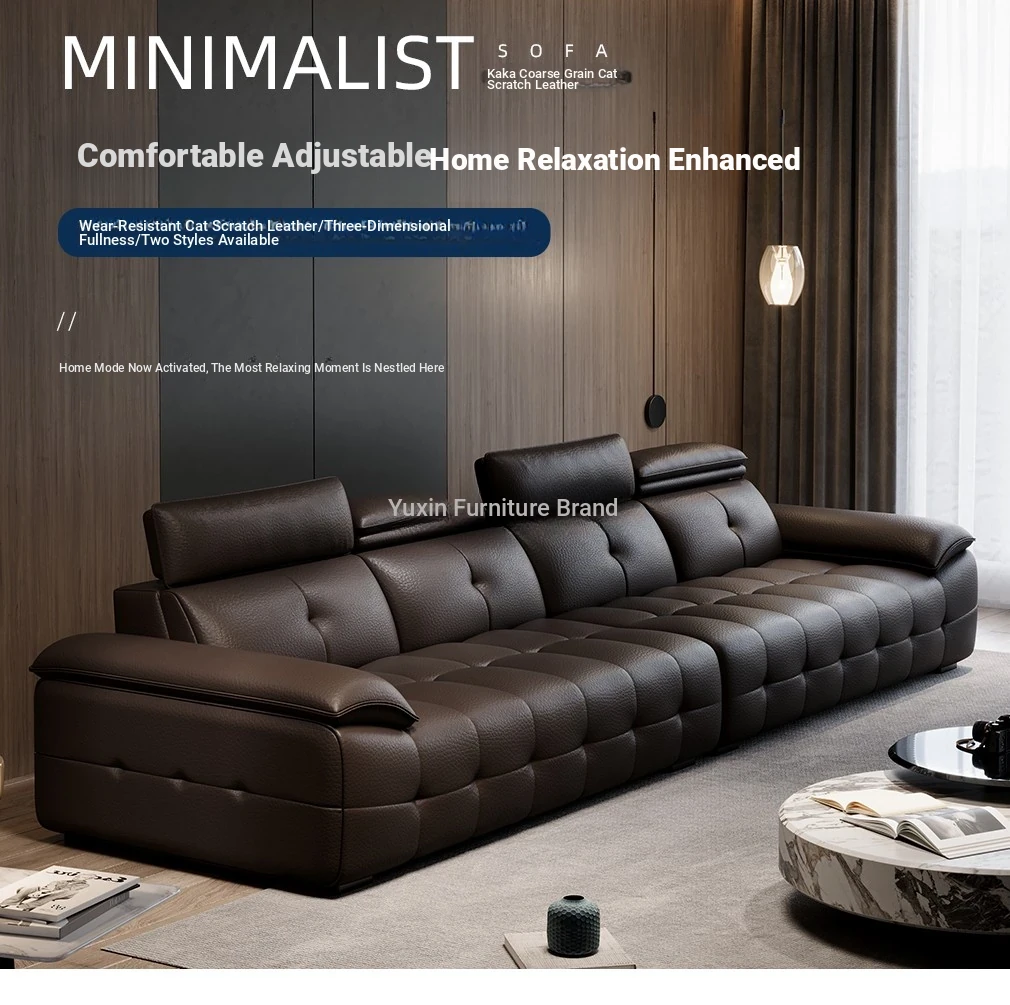 Italian Luxury Cat Scratch Resistant High-Back Functional Sofa - Modern Minimalist Vintage Villa Piano Key Leather Couch