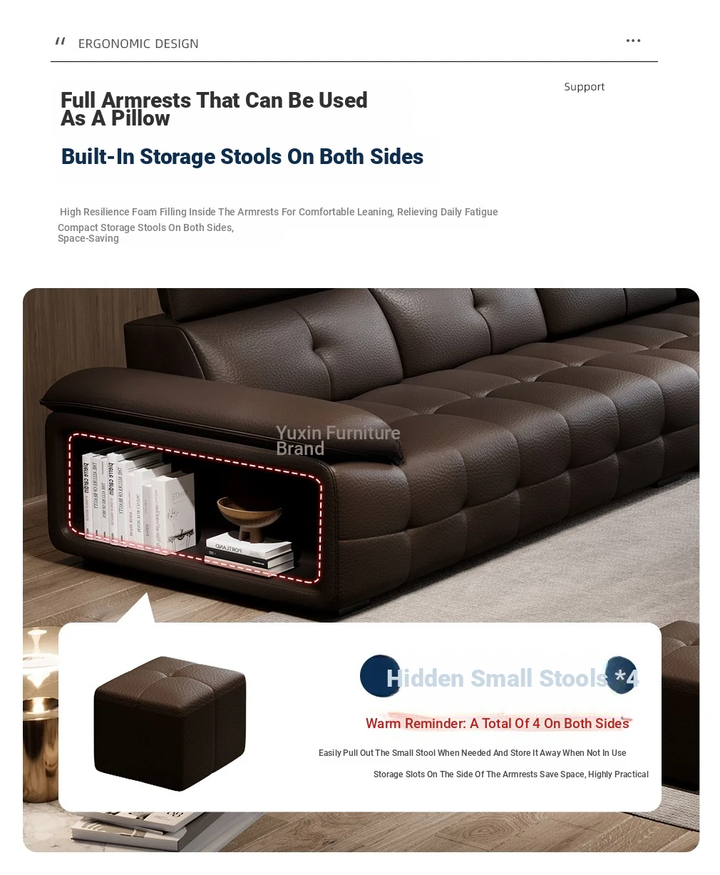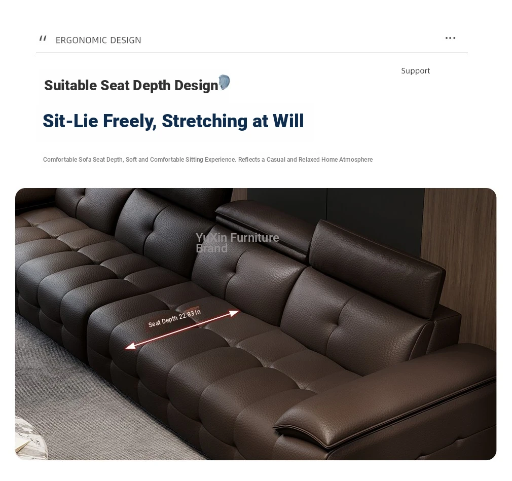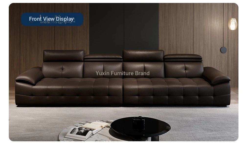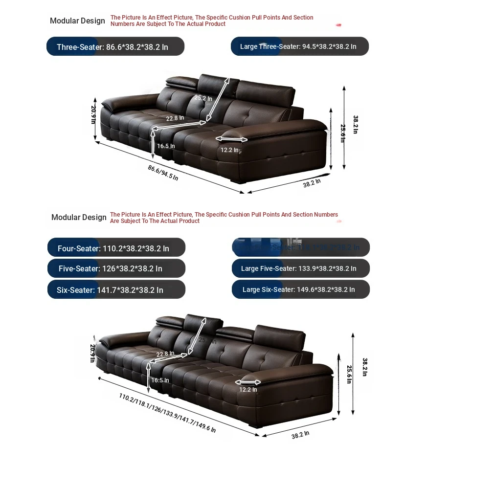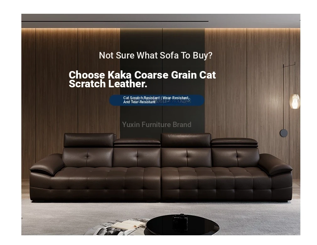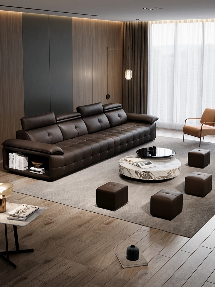 Italian Luxury Cat Scratch Resistant High-Back Functional Sofa - Modern Minimalist Vintage Villa Piano Key Leather Couch
