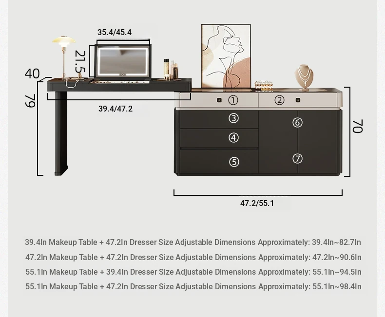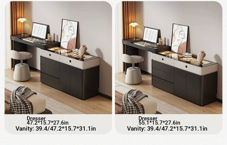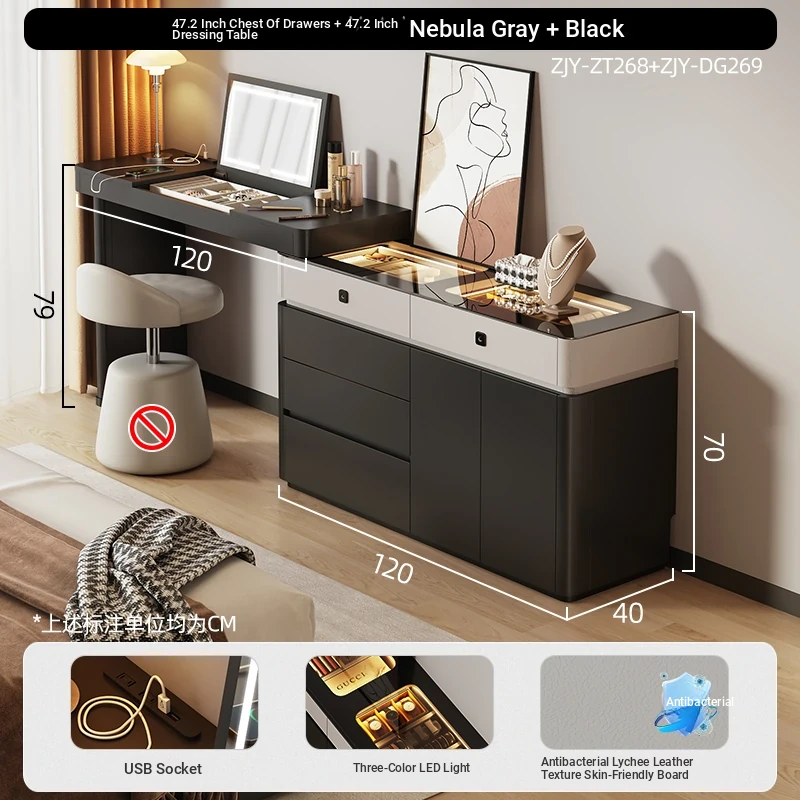 47.24 in bucket cabinet +39.37 in dressing table [Nebula Gray + black black]]
