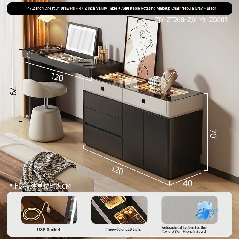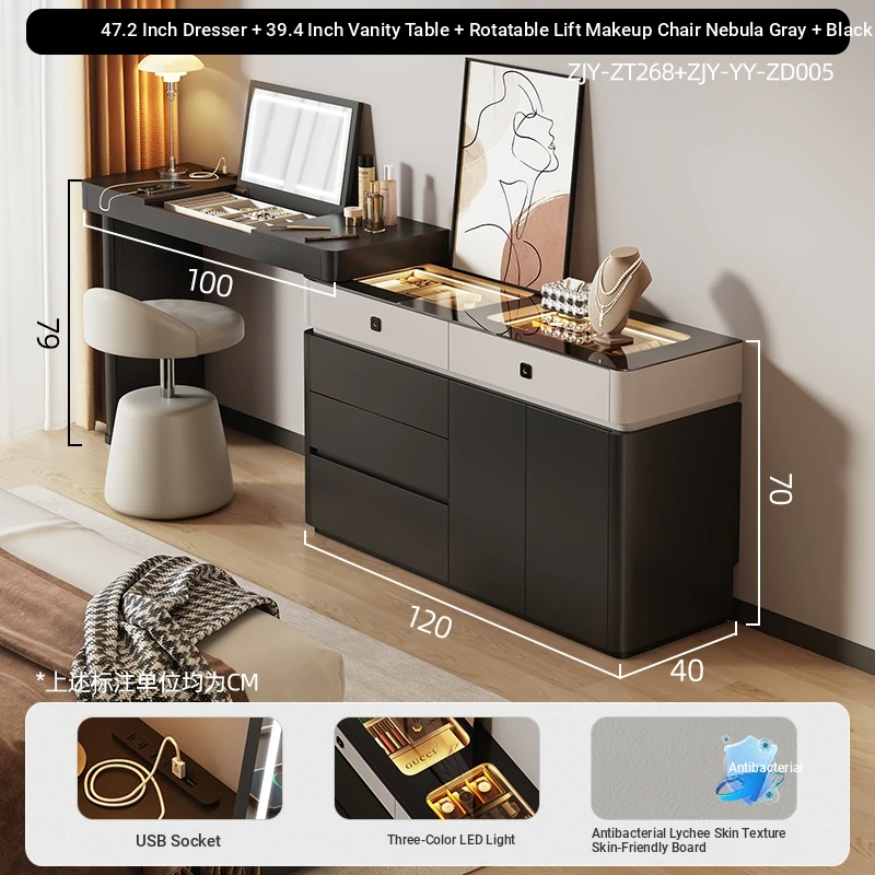 47.24 in bucket cabinet +39.37 in dressing table + Rotate Adjustable makeup chair [Nebula Gray + black black]]