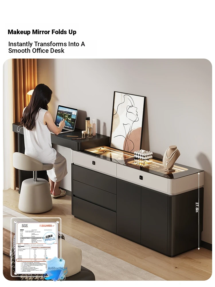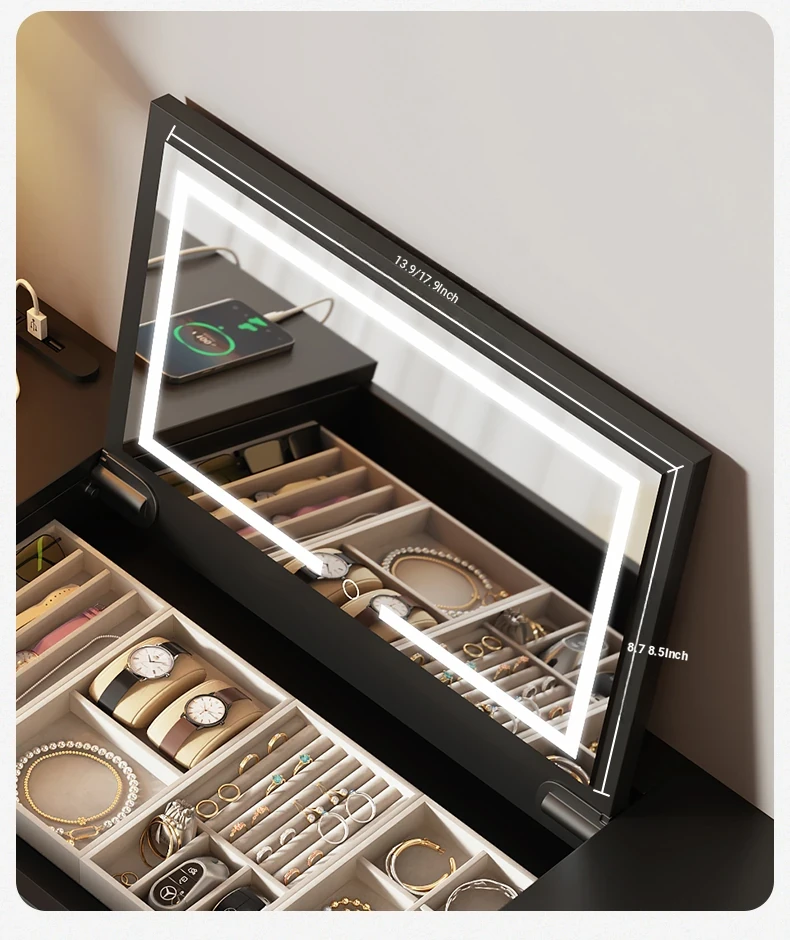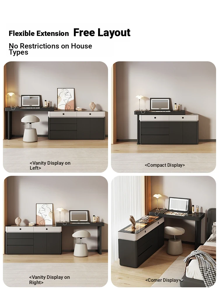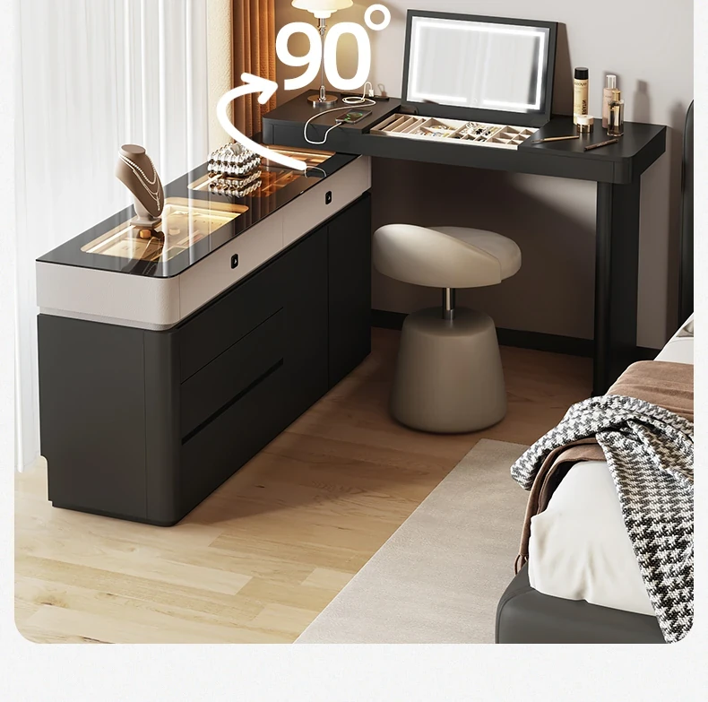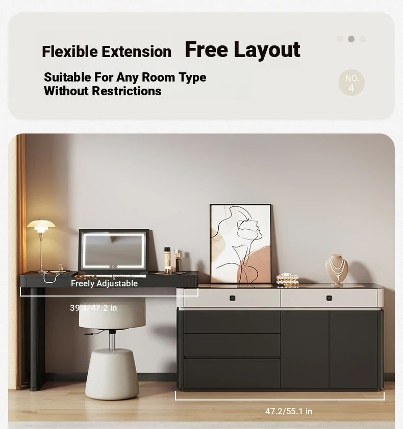 Modern Minimalist Vanity Table with Mirror and Flip Top, Versatile Corner Makeup Desk and Storage Cabinet for Bedroom, Perfect Bedside Solution