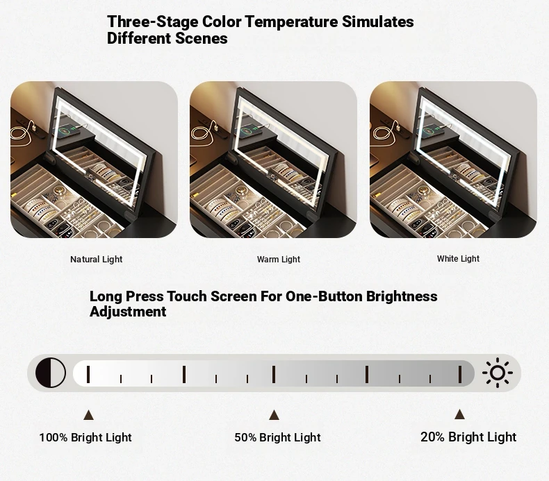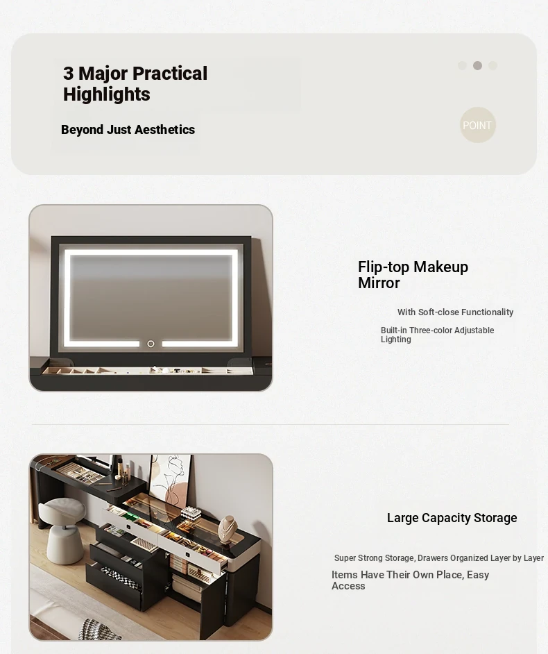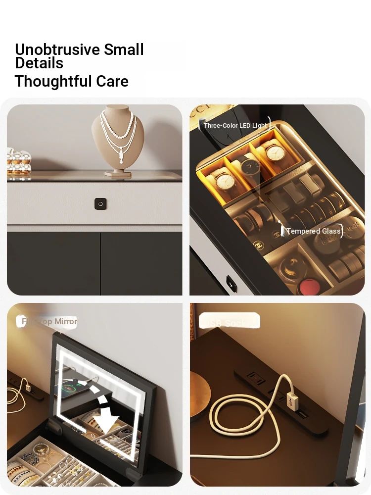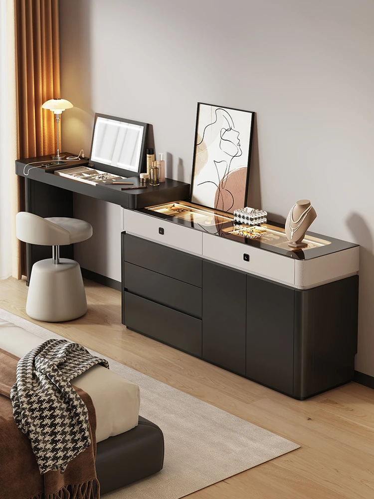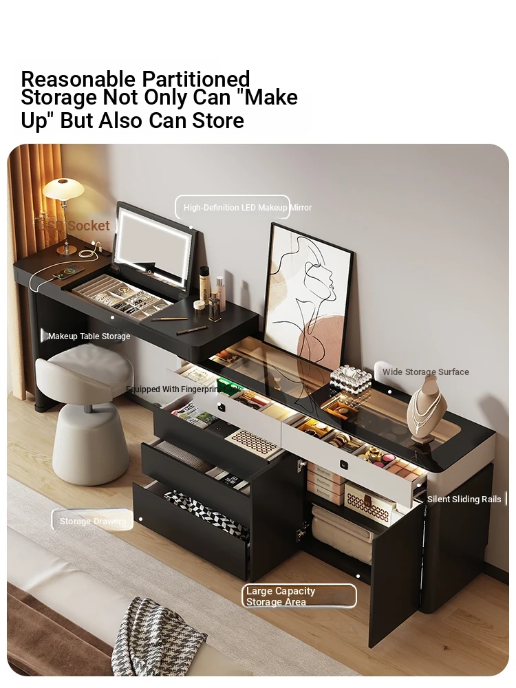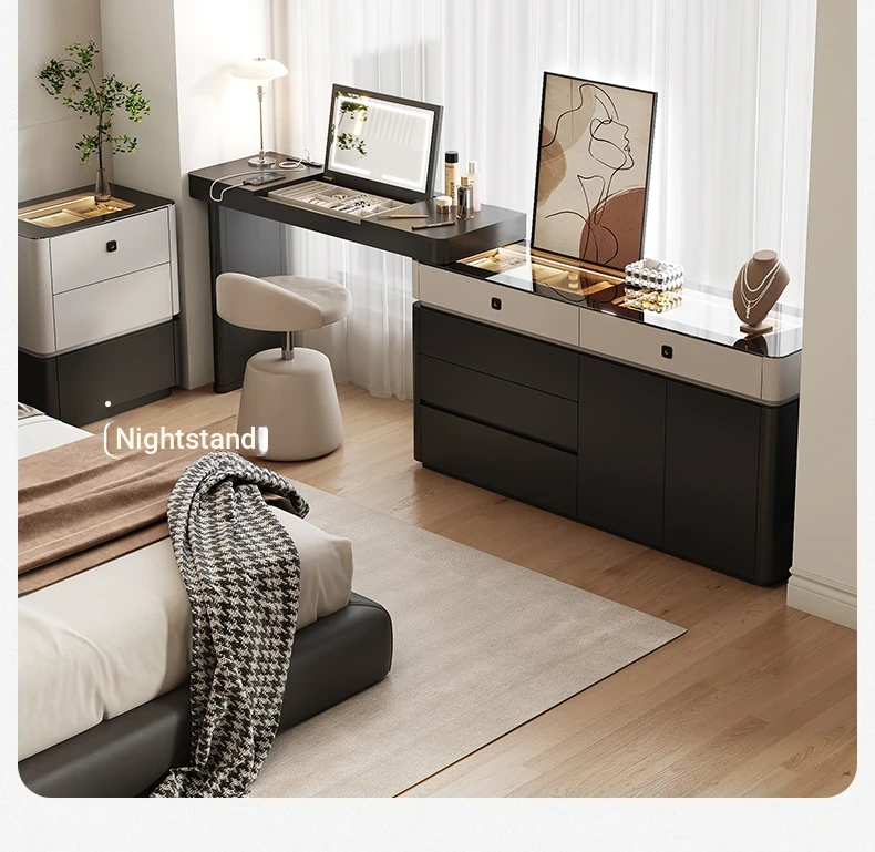 Modern Minimalist Vanity Table with Mirror and Flip Top, Versatile Corner Makeup Desk and Storage Cabinet for Bedroom, Perfect Bedside Solution