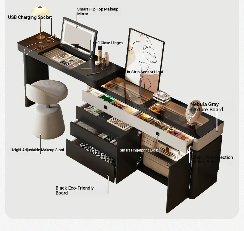 55.12 in bucket cabinet +47.24 in dressing table [Nebula Gray + black black]]