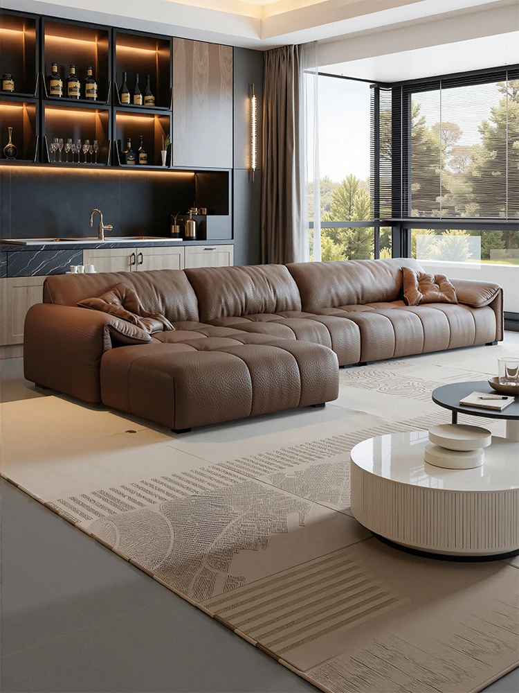 2025年新作!イタリアンミニマリズムのローレンス・ローランソファー - ラグジュアリーなリビングに最適な本革ソファ、大型ヴィラにもぴったり!快適さとスタイルを兼ね備えた一品。